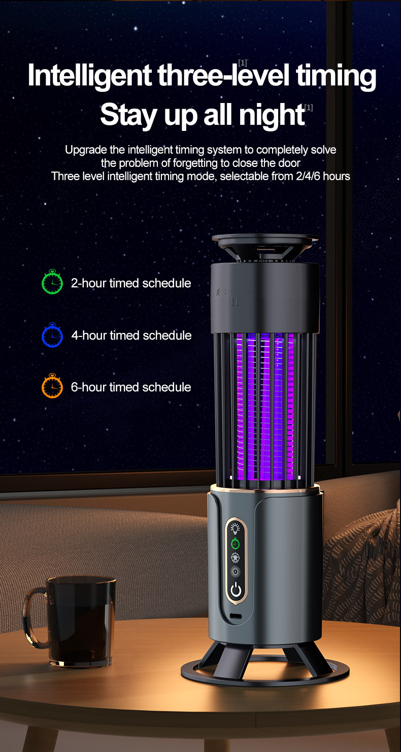 Discover effective mosquito protection with this powerful USB rechargeable mosquito trap lamp. Featuring an advanced purple LED light that attracts mosquitoes and a high-voltage electric shock grid that eliminates them instantly, this modern mosquito killer provides silent, chemical-free pest control.